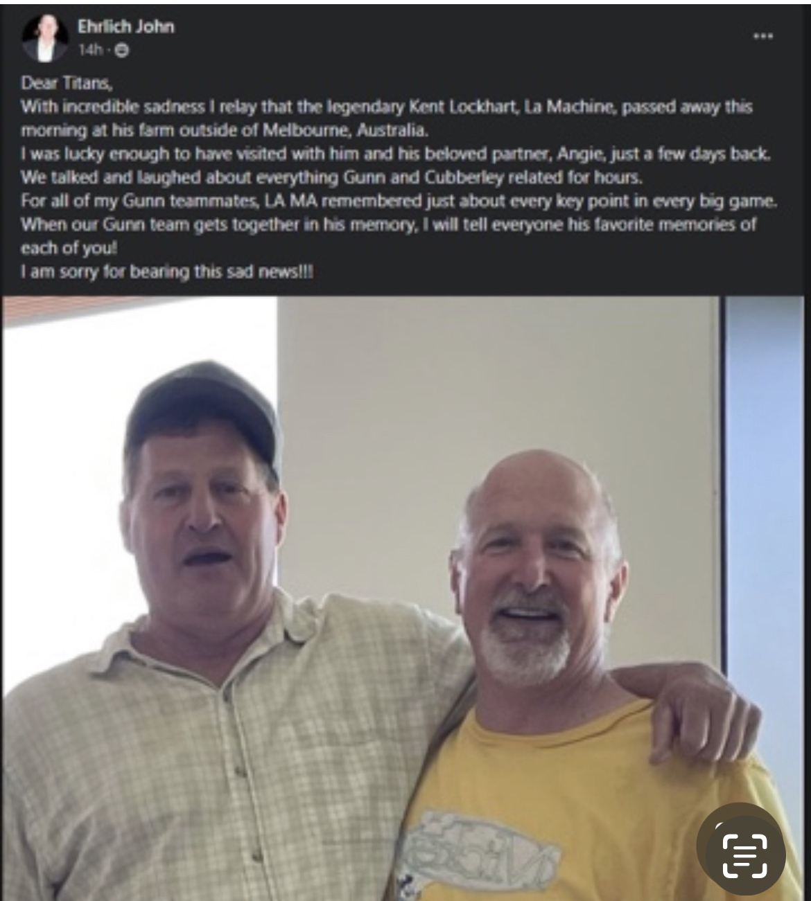 If not merely for his acumen, Kent was reknowned for his citizenship, and could be honored for such. When Cubberley and Gunn merged, somewhat contentiously, he led a basketball program whose success and fortune was an amazing balm. A very atypical sports star in demeaner, he befriended everyone from janitors to other playground legends (moving past Seale Park court, he also frequented Burgess Park in Menlo Park, and Gunn Gym — now named for Bob Bow — was the sight for pickup games and workouts featuring area players like Mike Norman of St. Francis and Santa Clara U fame; there was no Paye’s Place, but ask John Paye or Jim Harbaugh for that matter where Kent Lockhart would rank among competitors and sportsman they have encountered on any court or pitch).