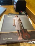If you look carefully you will note that in the first case, from 2006, the subject “Julie” is posed next to a guitar. The image was included in a recent art show about “The Guitar in American Art” — in fact the image dons the cover of the catalog, which is edited or curated by Leo G. Mazow. Just for yucks here also is my photo of the catalog, here at my table, at Coupa in Palo Alto: