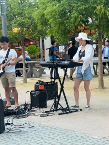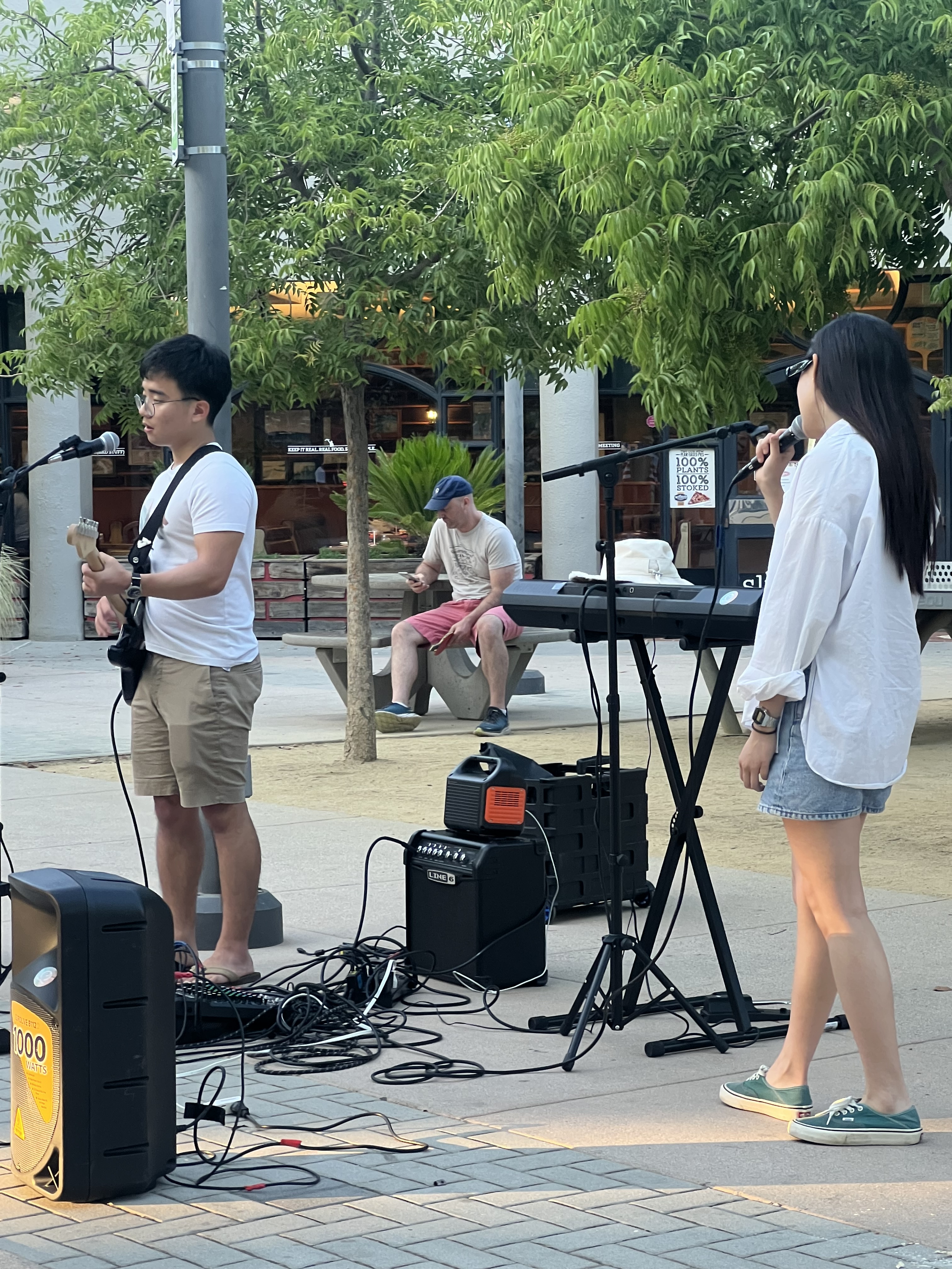 Buskers at Lytton Plaza who do nothing but K-pop arranged for electric guitar and vocal duet