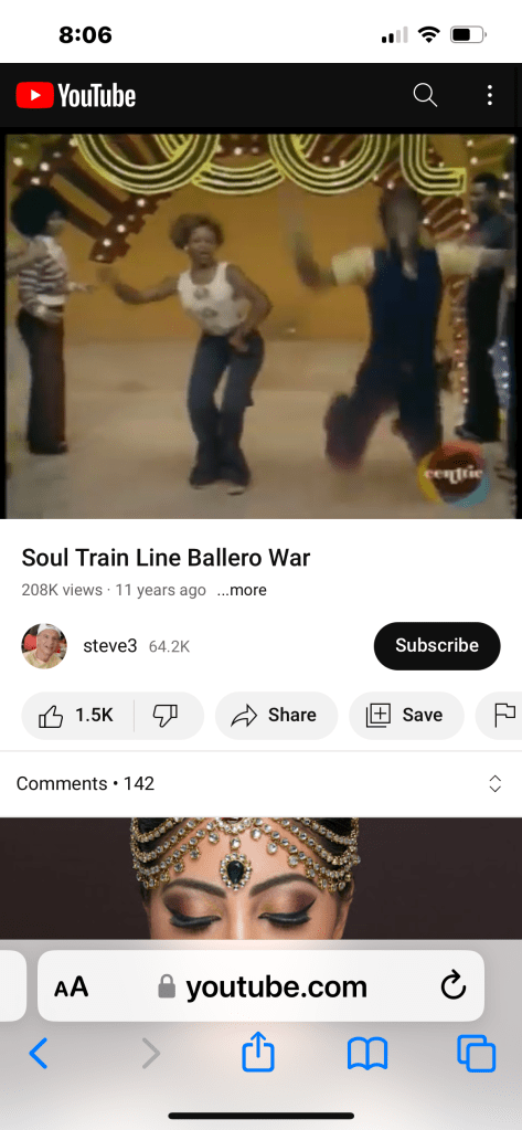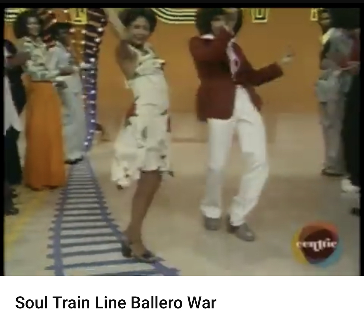 “Don’t Stop ‘Til You Get Enough.” The couple coordinated perfectly, the woman in a white dress decorated with dark crimson flowers and the man in a dark crimson suit and white pants, his cream shirt held together by only one button at the bottom, his whole chest on display, both of them shimmying their shoulders in sync to War’s “Ballero.”