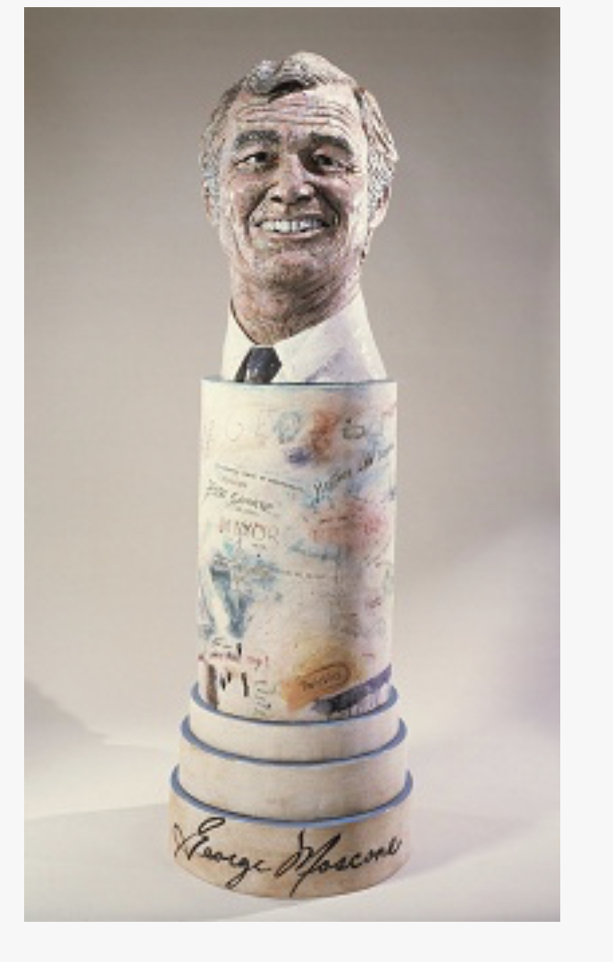 Robert Arneson, Portrait of George (Moscone), 1981; glazed ceramic; 94 x 31 1/2 x 31 1/2 in.; Collection SFMOMA, Phyllis C. Wattis Fund for Major Accessions. Acquisition made in memory of Jay Cooper. © Estate of Robert Arneson / Licensed by VAGA, New York, NY; photo: courtesy Estate of Robert Arneson