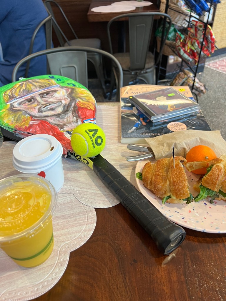 I am enjoying a late breakfast at Ada’s Café at the Mitchell Park community center; I am not blogging about what actually had me up at 7:30. But it’s a hint if you know that Mike Mulcahy was once player of the year for the Cubberley cougars.. and JD Diepenbrock, an enthusiastic pickle ball player has a husband named Peter.
