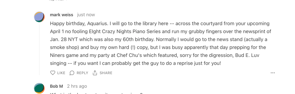 Mark Weiss, founder of Plastic Alto blog, is a concert promoter and artist manager in Palo Alto, as Earthwise Productions, with background as journalist, advertising copywriter, book store returns desk, college radio producer, city council and commissions candidate, high school basketball player, and blogger; he also sang in local choir, fronts an Allen Ginsberg tribute Beat Hotel Rm 32 Reads 'Howl' and owns a couple musical instruments he cannot play