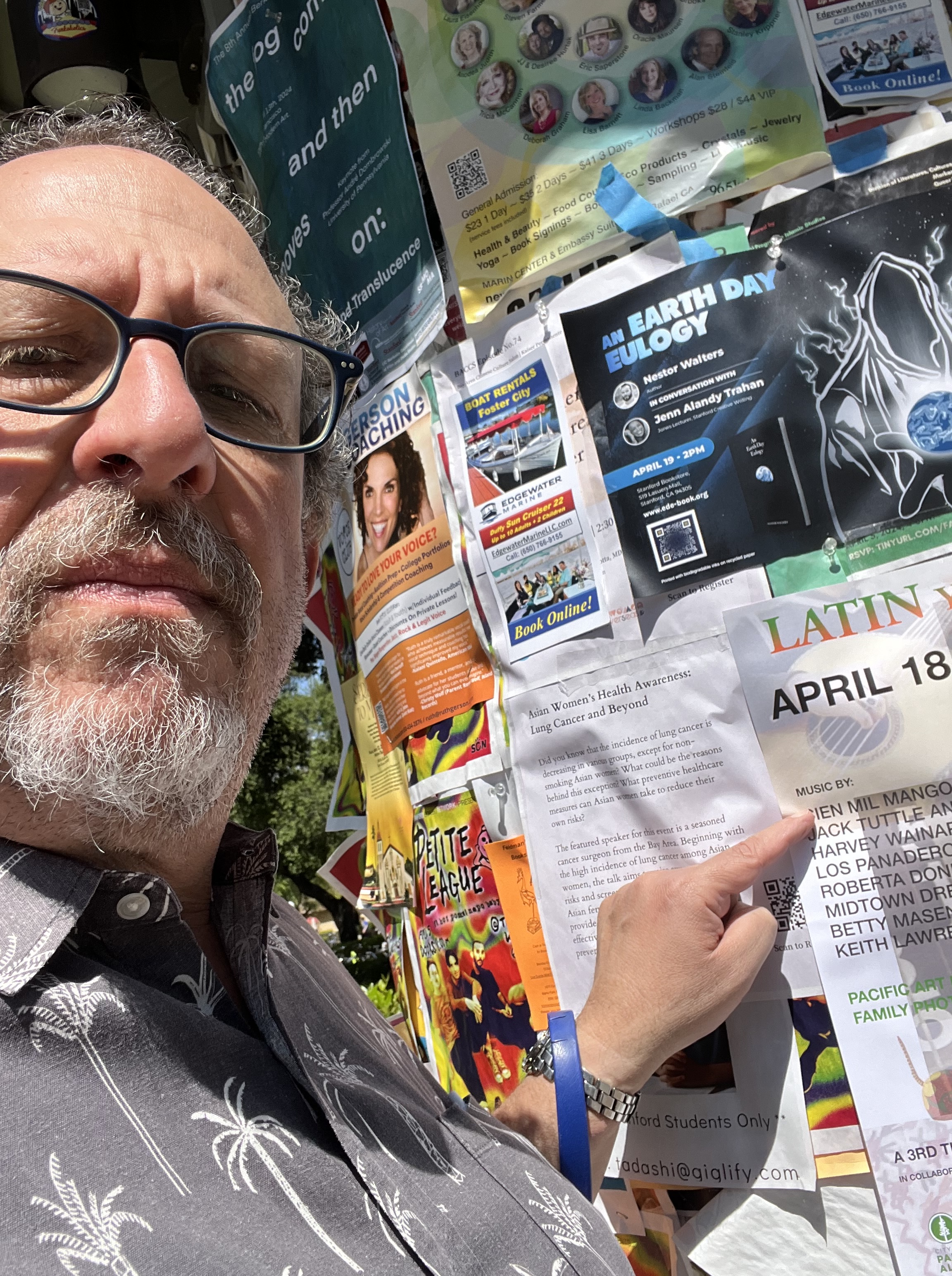 Mark Weiss, founder of Plastic Alto blog, is a concert promoter and artist manager in Palo Alto, as Earthwise Productions, with background as journalist, advertising copywriter, book store returns desk, college radio producer, city council and commissions candidate, high school basketball player, and blogger; he also sang in local choir, fronts an Allen Ginsberg tribute Beat Hotel Rm 32 Reads 'Howl' and owns a couple musical instruments he cannot play