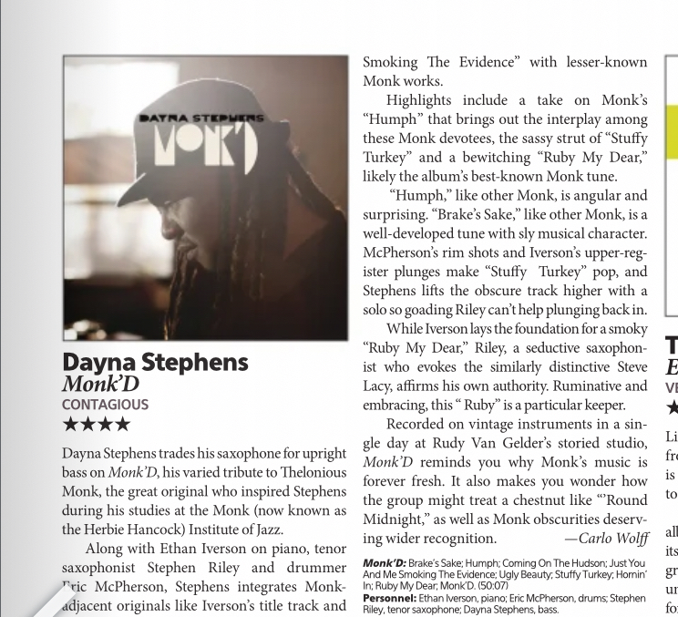 Kudos to Dayna and Ethan for garnering **** in the recent Downbeat. Monk you very munch