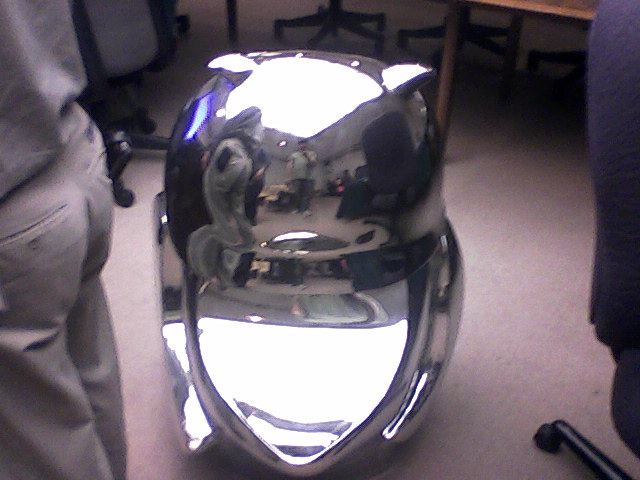 Weiss self-portrait in reflection, Brad Oldham owl, at City Council joint session with art commission, Monday, Nov. 5, 2012